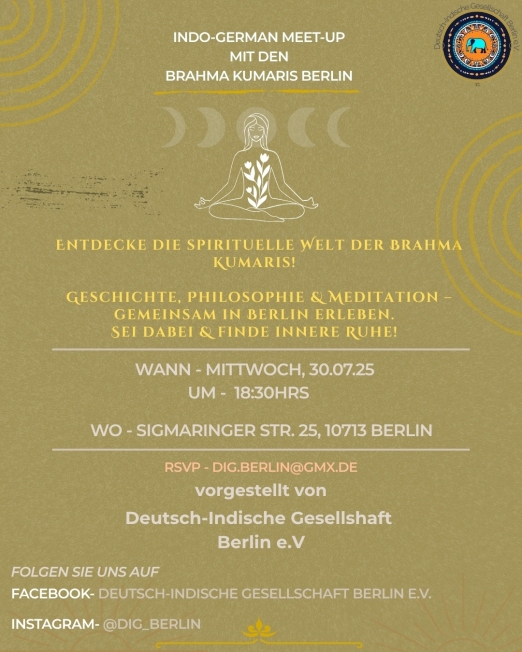 Wednesday, 30.07., 18:30hrs Indo-German Meet-Up with the Brahma Kumaris Berlin